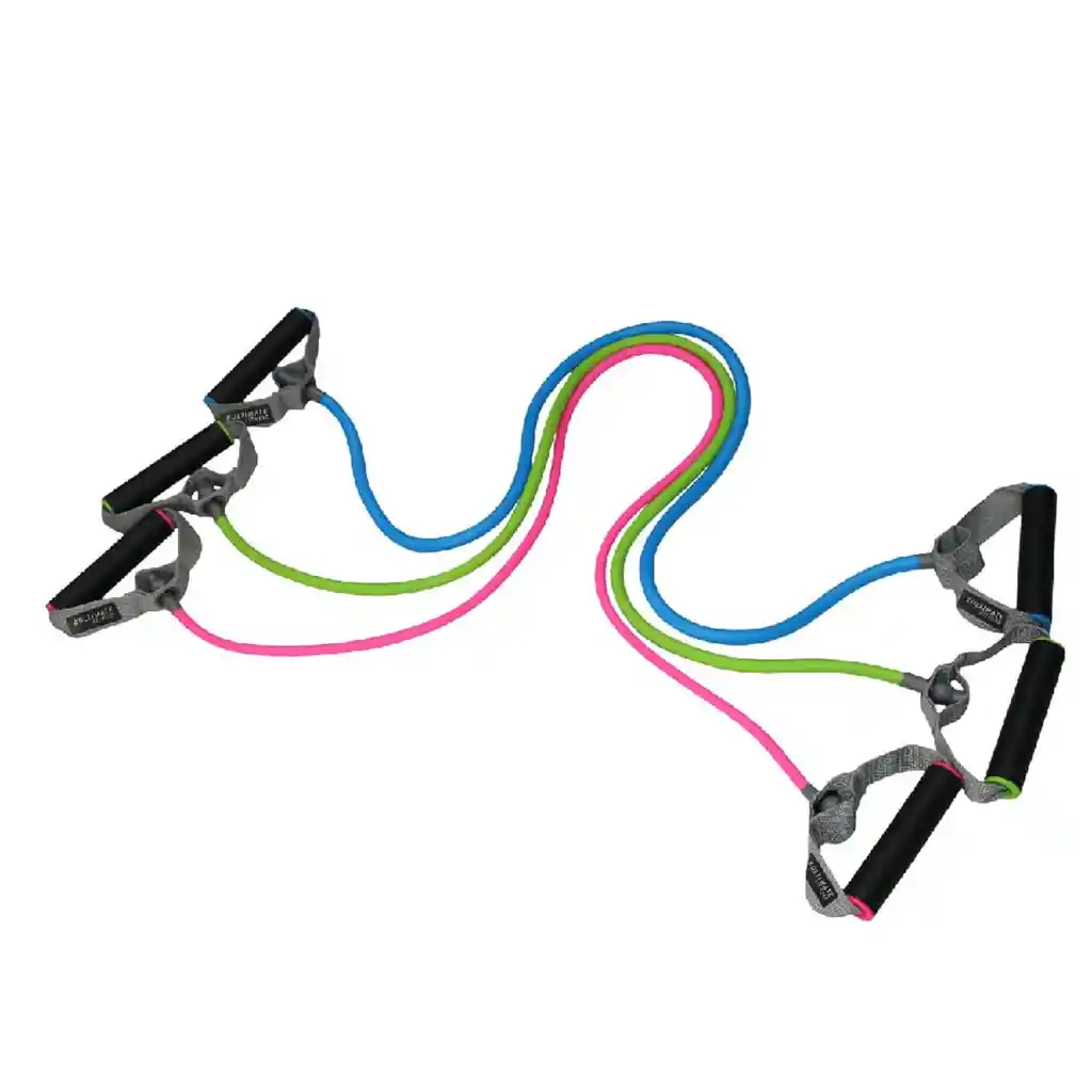 Las bandas de resistencia son accesorios sumamente prácticos y por lo mismo se han convertido en un elemento básico para cualquier deportista aficionado o profesional. Se caracterizan por ser livianas y fáciles de transportar o almacenar, además de ser altamente económicas. Las hay en muchas formas, ya sea en banda, circulares y tubulares. El Set de Bandas Elásticas de Resistencia Tubulares incluye 3 bandas de 5 x 8 x 1200, 6 x 9 x 1200 y 5 x 9 x 1200 mm, para tener una gama amplia de variación de resistencia, lo que es ideal para ajustar a tus necesidades. Se pueden usar separadas o de manera conjunta y combinadas. Las manillas acolchadas son perfectas para brindarte la comodidad indicada al ocuparlas y evitar las heridas en las manos, para que las puedas utilizar sin preocupaciones durante mucho tiempo. Las bandas de resistencia son ideales para un sin fin de actividades, incluyendo la rehabilitación, tonificación, el yoga, pilates, crossfit y entrenamiento funcional, entre otros. Así mismo, son amigables y fáciles de usar, por lo que las pueden usar todo tipo de personas, agregándole dinamismo a las rutinas habituales. Gracias a su diseño compacto, liviano podrás guardarlo fácilmente, o llevar tu entrenamiento al aire libre o al gimnasio sin complicaciones. Información adicional: Bandas elásticas con manillas acolchadas. 3 niveles de intensidad Material: Plástico PP, TPR, Polyester, Espuma alta densidad.