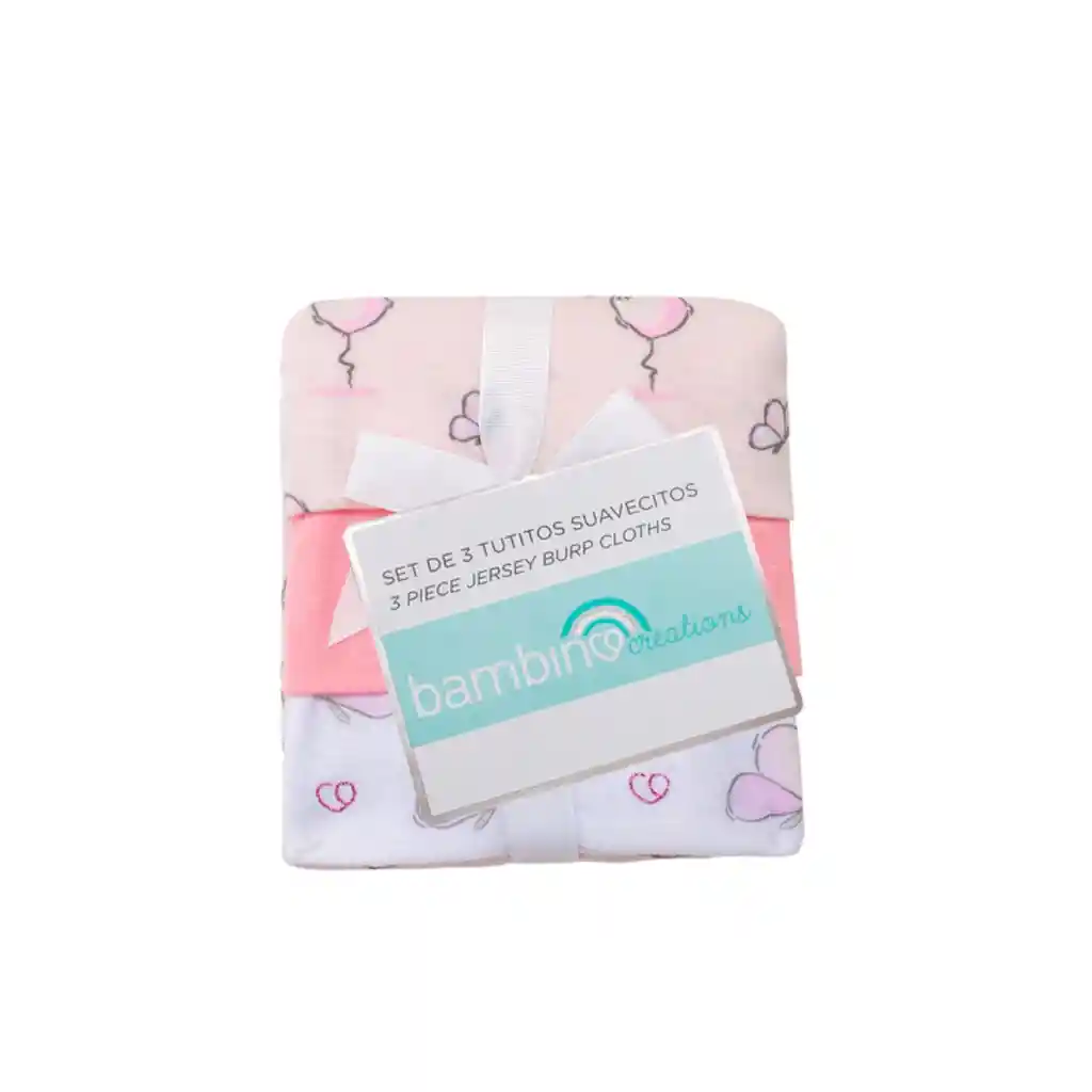 Set De 3 Tutos Bambino Rosa Pañito de compañía para dormir. Características: - Incluye 3 piezas. - Tutos suaves y livianos, ideales para que tu bebé juegue y se convierta en su tuto regalón. - El tamaño del tuto es especial para que pueda acurrucarse con él. - 40 x 64 cm. aprox. - 50% Algodón, 50% Poliéster.
