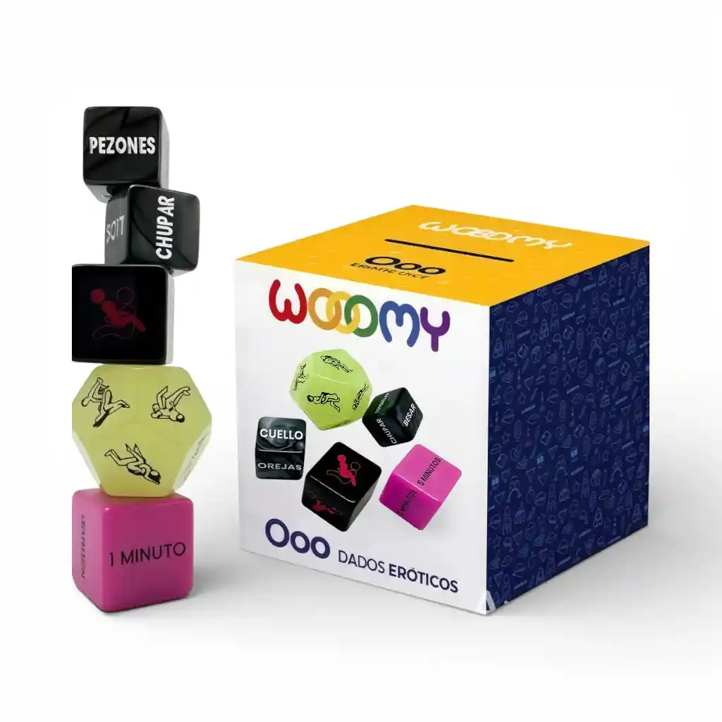 Los Dados Eróticos Wooomy Ooo están diseñados para romper la rutina y añadir un toque de emoción a tus encuentros íntimos. Cada lanzamiento de los dados te invita a experimentar nuevas sensaciones, fomentando la exploración y la conexión profunda con tu pareja. Atrévete a descubrir nuevas formas de placer y a revitalizar tu vida sexual con este juego innovador. Están fabricados con materiales de alta calidad, ofreciendo una sensación suave y agradable al tacto. Sus inscripciones claras y duraderas garantizan una lectura fácil, incluso en momentos de pasión. Este producto está diseñado para resistir el paso del tiempo, asegurando que cada noche de juego sea tan emocionante como la primera. Características: Contenido: 5 dados. Material: Acrílico. Libre de ftalatos. Resistentes al agua. Portátil. Diseños: 1 Dado de 12 posiciones sexuales. 1 Dado con 6 tiempos en minutos. 1 Dado de 6 posiciones sexuales. 1 Dado con 6 partes del cuerpo. 1 Dado con 6 acciones a realizar.