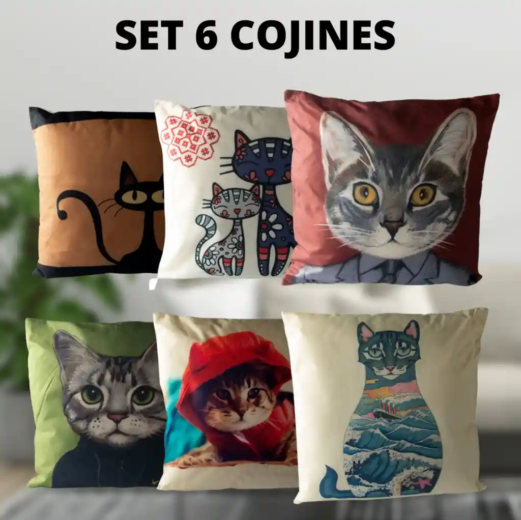 Set De 6 Cojínes De Tela Diseño De Retrato Gatitos A