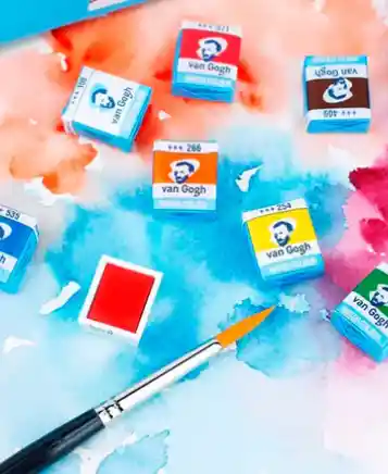 Las acuarelas Van Gogh tienen una viscosidad rica y uniforme. Su paleta de colores vivos y transparentes tienen una excelente resistencia a la luz y se mezclan muy bien entre sí logrando una amplia gama de colores, matices y tonos. Gracias a su pureza y su viscosidad uniforme, es fácil mezclar estas acuarelas y trabajar con ellas. Las acuarelas Van Gogh son pinturas de un nivel calidad apto para estudiantes y artistas. Se ofrecen en colores brillantes, transparentes e intensos con gran poder colorante.
