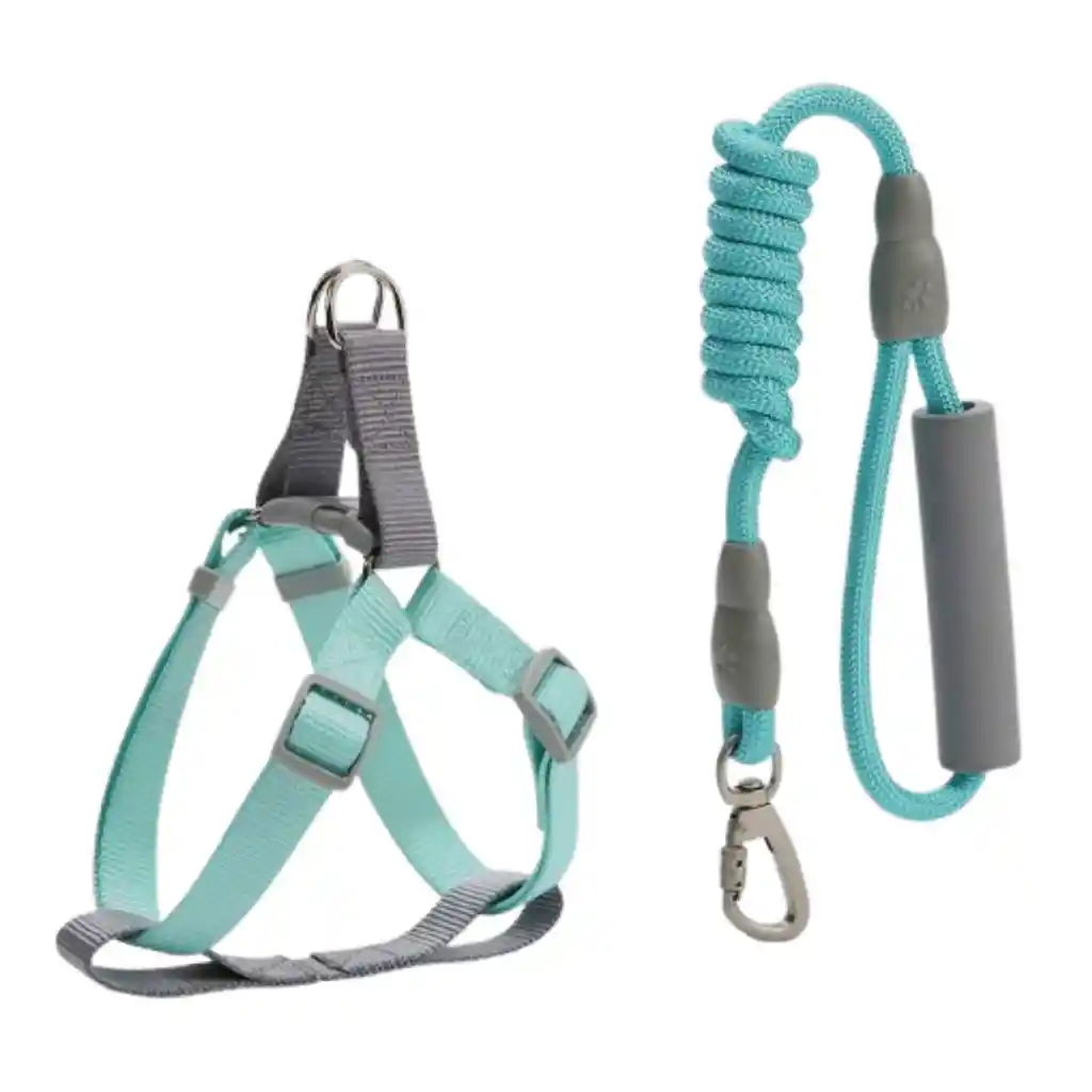 - Juego de arnés y correa para y perros pequeños - Correa elaborada de poliéster suave y resistente - Tiene un mango acolchado para amortiguar tirones - Su gancho mosquetón, es giratorio en 360° para evitar enredos - Este arnés protege la piel de tu perro, es transpirable, ligero, cómodo, duradero, fácil de limpiar y de secado rápido. - La malla de aire transpirable mantiene a tu perro fresco todo el tiempo cuando estás al aire libre, es adecuado para todas las estaciones y a tu perro le encantará caminar en este transportador todos los días. - Color: Turquesa