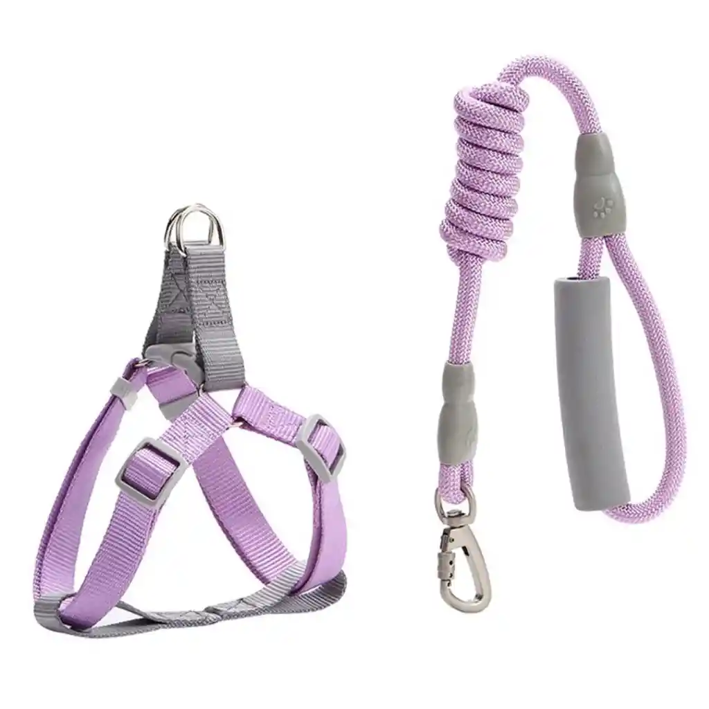 - Juego de arnés y correa para perros pequeños - Correa elaborada de poliéster suave y resistente - Tiene un mango acolchado para amortiguar tirones - Su gancho mosquetón, es giratorio en 360° para evitar enredos - Este arnés protege la piel de tu perro, es transpirable, ligero, cómodo, duradero, fácil de limpiar y de secado rápido. - La malla de aire transpirable mantiene a tu perro fresco todo el tiempo cuando estás al aire libre, es adecuado para todas las estaciones y a tu perro le encantará caminar en este transportador todos los días. - Color: Lila