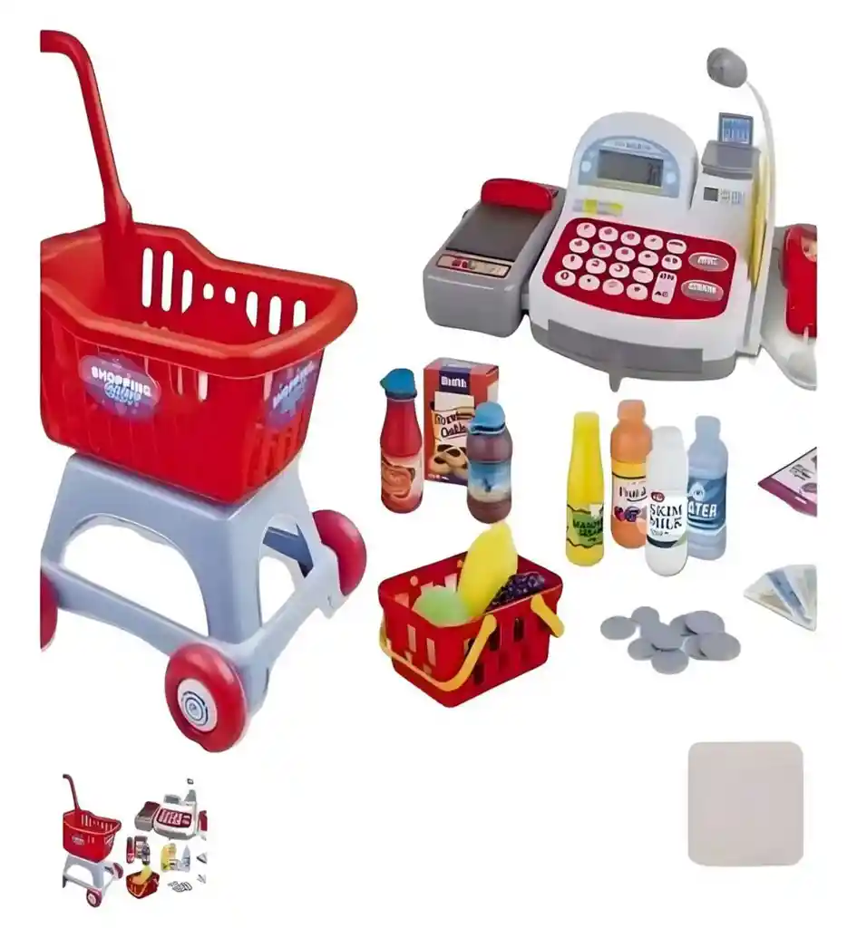 Juega con tus peques y pasa un día en el supermercado con este divertido Juego de Supermercado con Carro y caja Registradora. Juega a ser el dependiente o el cliente y enséñale matemáticas básicas para pedir el cambio o cuántos artículos quiere. Además del carro y la caja registradora, incluye varios productos, 1 cesta, billetes y monedas. Funciona con 3 pilas AA. Jugueton.Edad recomendada: +3 años.