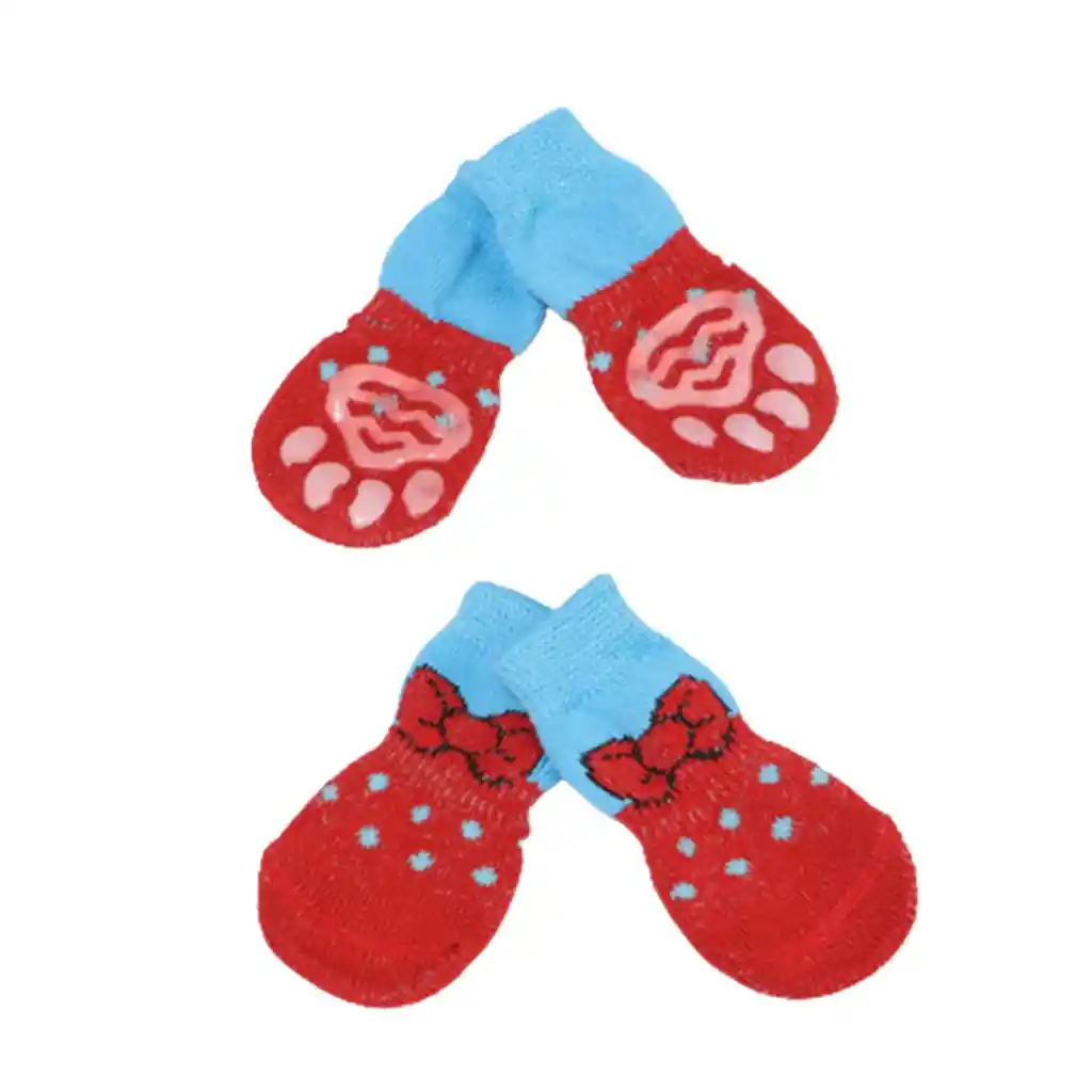 Calcetines antideslizantes para mascotas Hechos de hilo de algodón, algodón, muy buena elasticidad, no se deslizará, se puede colocar firmemente en la patita de tu mascota, goma antideslizante en la suela. Adecuados para perros pequeños y medianos, lo que permite a los perros caminar libremente en casa y evitar rayar el suelo. Buena elasticidad y resistencia natural No dañan las patas de las mascotas Impresión y teñido reactivo, sin agente fluorescente, puede masticar la tela Suela antideslizante para correr libremente y sin lucha. Suaves y cómodos, no fáciles de soltar. 4 piezas de zapatos cálidos para mascota Talla L (3,5 x 9 cm)
