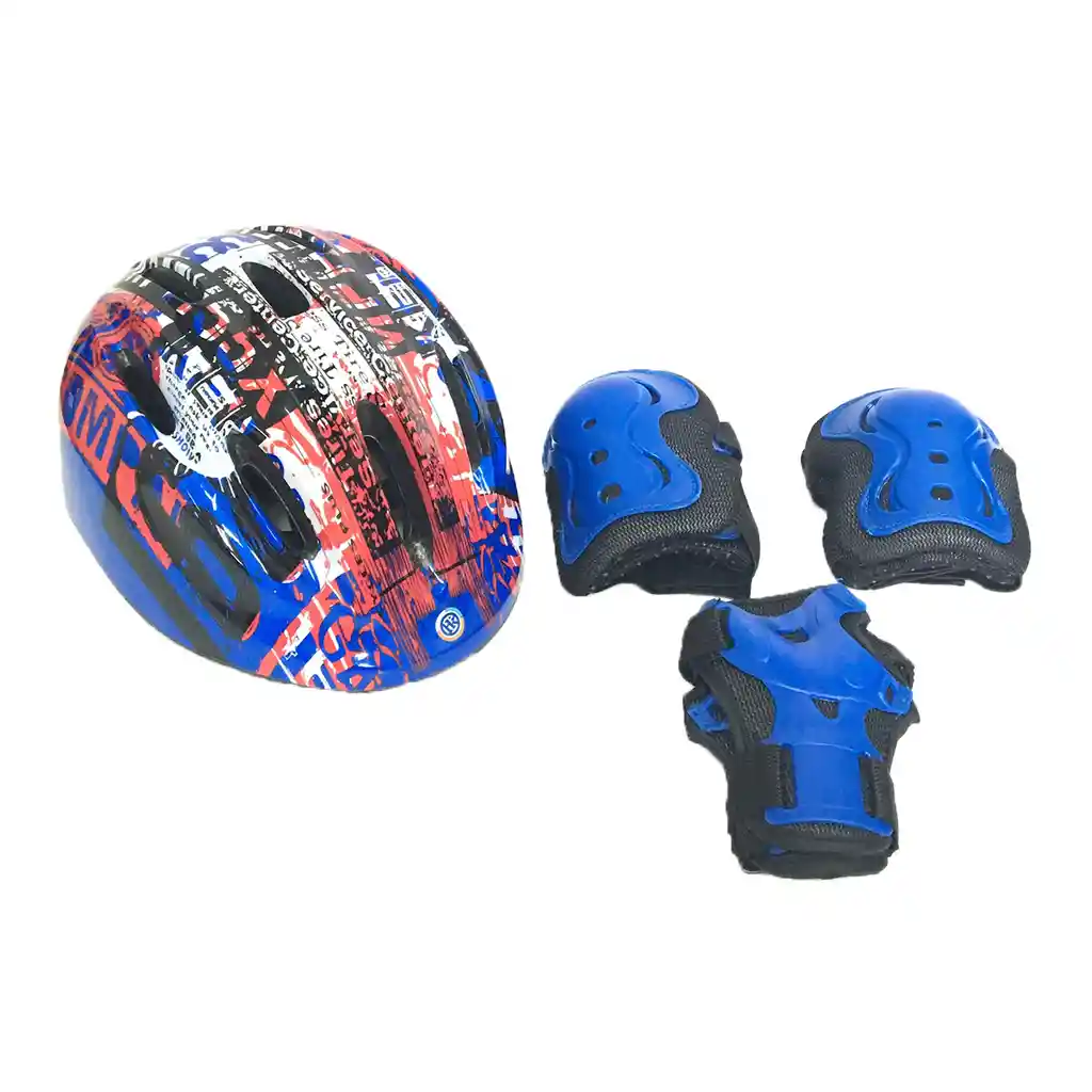 Set de casco y protecciones Hook Azul HK-331 Las nuevas protecciones integral para niños HOOK incluye un casco, dos rodilleras, dos coderas y dos muñequeras. El casco y las protecciones asegurarán que sus hijos estén en una protección de completa mientras hacen deportes al aire libre. especialmente para patinaje sobre ruedas, patinetas, ciclismo, BMX etc. Perfecto para muchas actividades al aire libre: El juego de protecciones Hook es una buena opción para que los principiantes aprendan patinaje en línea, skate, patines, andar en bicicleta y otros deportes extremos. El conjunto de casco y protecciones protege a nuestro niño ante cualquier caída. INFORMACIÓN ADICIONAL: Adecuado para: niños de 3 años en adelante. El casco incluye una roldana de ajuste que es adecuado para niños cuya circunferencia de la cabeza es de 52 ~ 55 cm. Material de alta calidad y cómodo: El casco está hecho de una cubierta de EPS + PC resistente y duradera que puede contra la presión externa de impacto La esponja interna suave y transpirable permite que el aire a través del casco y las almohadillas sean más cómodos y relajados al practicar deportes. Correa elástica ajustable: La correa del casco tiene ajuste múltiple para acomodar de la mejor forma y los elásticos de ajuste de las protecciones tienen fijación con velcro para una postura más rápida y cómoda. Ventilación: Diseñado con 8 aberturas, diseño aerodinámico especial, que ayuda a reducir la sudoración y sentirse fresco incluso durante el movimiento intenso del cuerpo, que se considera como cascos fríos para skate o patines.