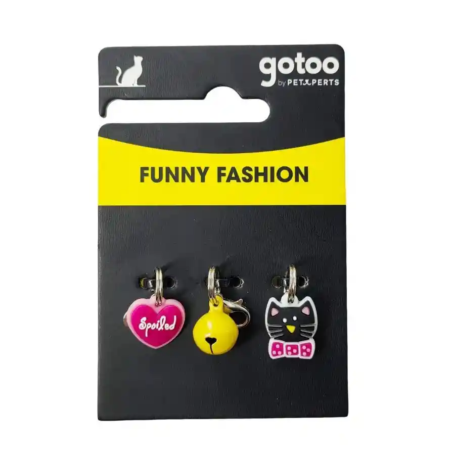 Dale un toque único al collar de tu gato con el set de chapas decorativas de la colección Funny Fashion de Gotoo. Este conjunto de accesorios está diseñado para agregar personalidad y estilo, convirtiendo cada paseo o momento en casa en una ocasión especial. Características Diseños encantadores y vibrantes – Incluye tres modelos diferentes: Corazón rosa con el mensaje "Spoiled", ideal para los más regalones. Cascabel amarillo, perfecto para identificar a tu gato con un sonido suave. Figura de gato negro, un detalle adorable para cualquier ocasión. Material ligero y resistente – Hechas de PVC duradero, garantizando comodidad sin incomodar a tu gato. Fácil de colocar y cambiar – Mosquetón incluido para sujetarlas fácilmente al collar. Combinables y versátiles – Ideales para personalizar el look de tu gato según el momento. Un Toque Especial para Tu Gato Las chapas Funny Fashion de Gotoo son más que un accesorio, son una expresión de estilo y amor por tu mascota. Su diseño colorido y liviano asegura que tu gato se sienta cómodo mientras luce increíble. Haz que tu gato destaque con el set de chapas decorativas Gotoo, la combinación perfecta de estilo, ligereza y funcionalidad. let carouselInner = document.querySelector('.carousel-inner'); carouselInner.insertAdjacentHTML('beforeend', '');