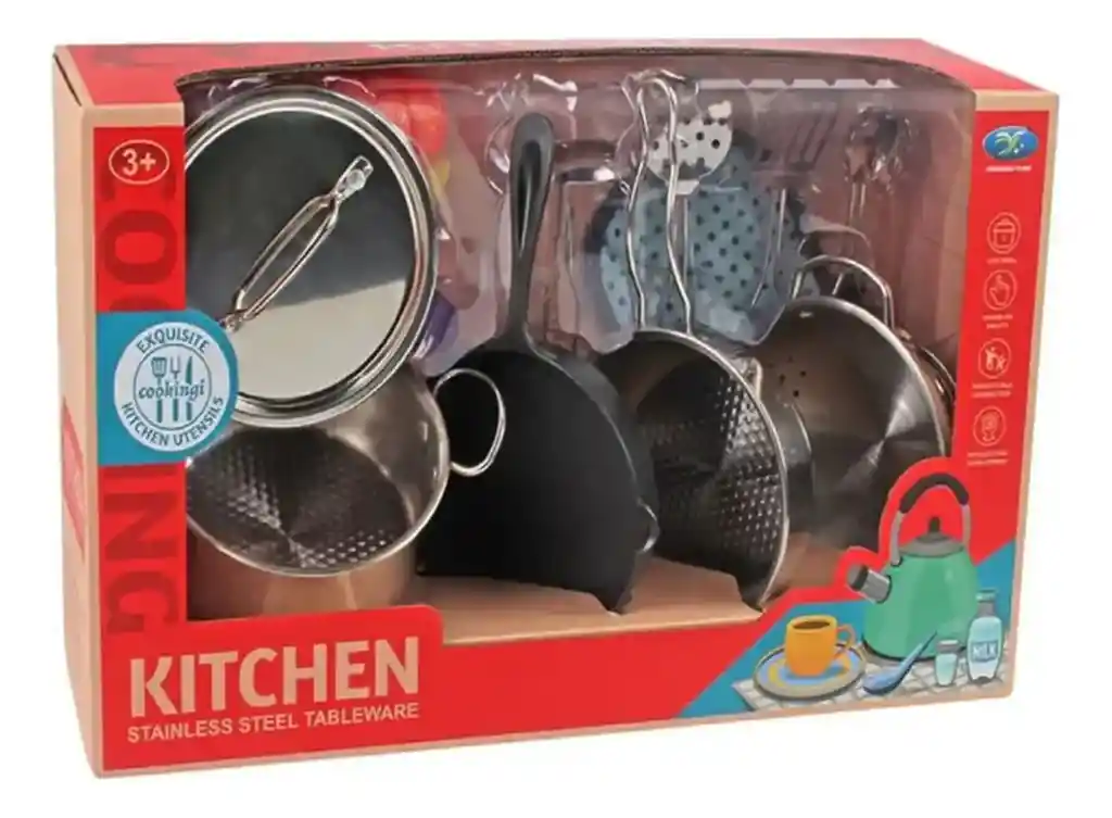 Este set de cocina metálico es de gran calidad, lo cual permite que niñas y niños puedan realizar juego de roles e imitar la actividad diaria de cocinar Introduce a tus pequeños chefs en el apasionante mundo de la cocina con este Set de Cocina de Ollas de Acero Inoxidable. Diseñado especialmente para niños de 5 a 7 años, este conjunto ofrece piezas que incluyen todo lo necesario para que tus hijos exploren y desarrollen sus habilidades culinarias. Fabricado en acero inoxidable, el set combina durabilidad con un diseño atractivo, ideal para fomentar la creatividad y el juego de rol. Cada pieza es ligera y fácil de manipular, permitiendo que los niños se sumerjan en un ambiente seguro mientras imitan a los adultos en la cocina. Este producto promueve la coordinación, la destreza manual y el trabajo en equipo, ya que los pequeños pueden compartir la experiencia de cocinar con amigos o familiares. Además, les invita a experimentar con ingredientes y recetas, fortaleciendo su amor por la gastronomía. Ideal para actividades en casa, este set convierte cualquier día en una aventura culinaria. Los juegos de cocina estimulan la imaginación y permiten a los niños aprender sobre la preparación de alimentos de una manera divertida. Así, mientras juegan, también absorben conocimientos útiles sobre la cocina y la celebración de momentos juntos. Proporciona a tus hijos las herramientas necesarias para descubrir su pasión por la cocina y disfruta de ver cómo se divierten mientras se convierten en pequeños maestros en la cocina. Un regalo perfecto que combina aprendizaje, diversión y desarrollo de habilidades.
