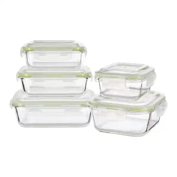 Set Contiene 5 Unidades. Contenedores de Alimentos de Plástico Pp Con Cierre Hermético Con Formas Rectangulares y Cuadradas.