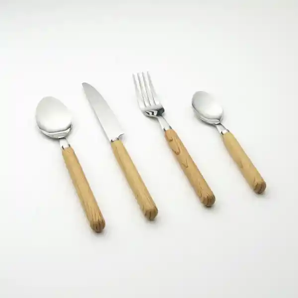Set Contiene 24 Unidades. De Cuchillería Con Base de Color. Incluye Tenedor Cuchillo Cuchara Sopera y Cuchara de Postre.