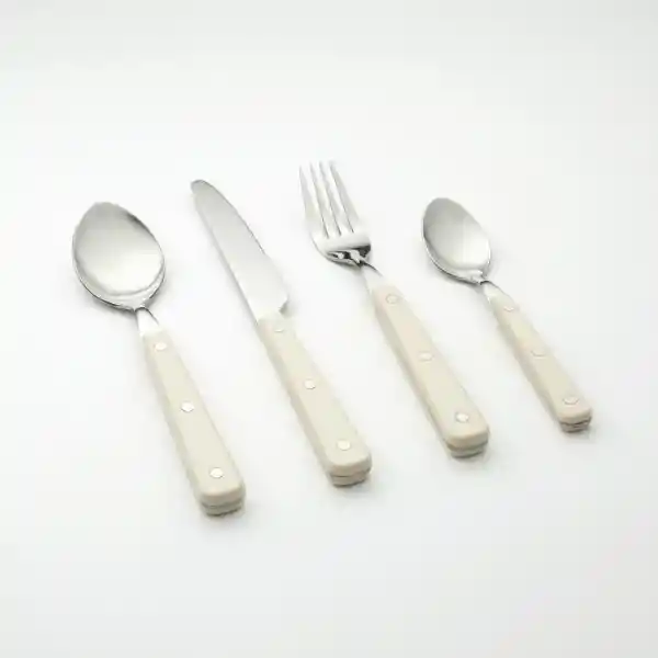 Set Contiene 24 Unidades. De Cuchillería Con Base de Color. Incluye Tenedor Cuchillo Cuchara Sopera y Cuchara de Postre.