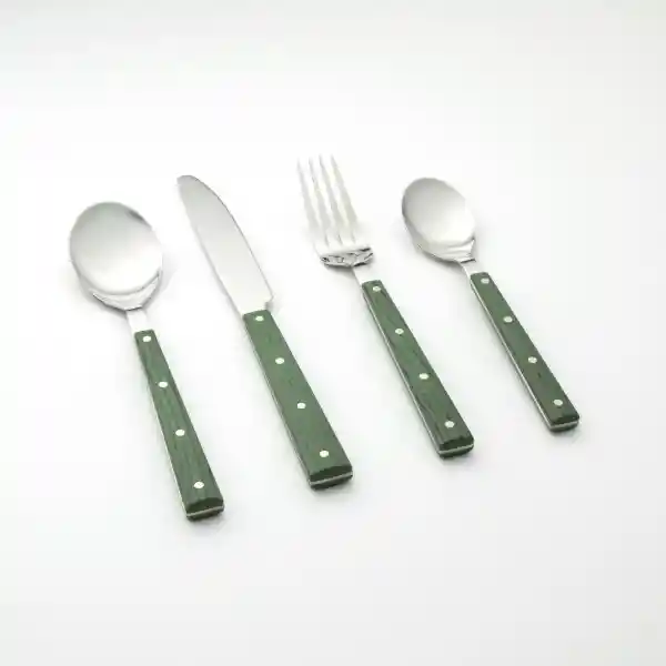 Set Contiene 24 Unidades. De Cuchillería Con Base de Madera. Incluye Tenedor Cuchillo Cuchara Sopera y Cuchara de Postre.