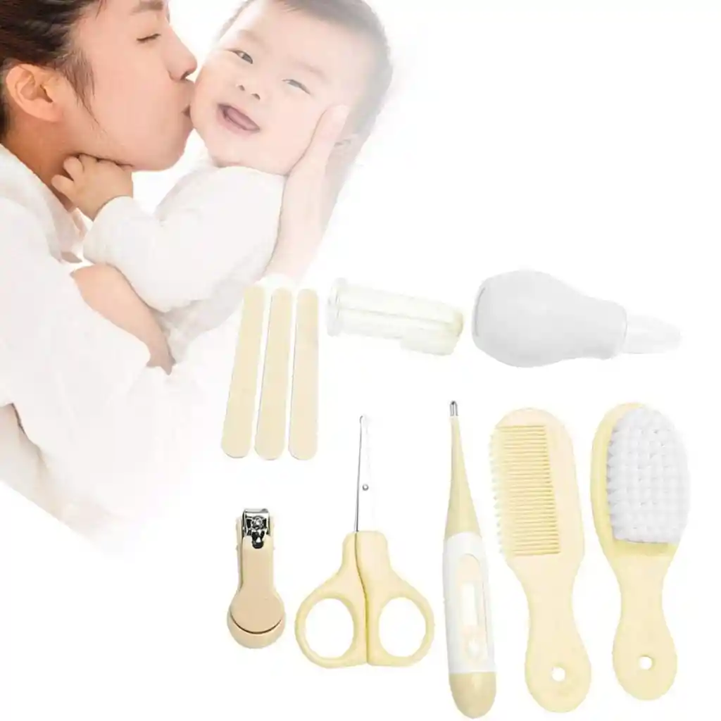 El kit de cuidado del bebé, que incluye 8 piezas de herramientas necesarias, está especialmente diseñado para el cuidado y la salud del bebé, incluye tijeras, cepillo para bebés, peine para bebés, lima de uñas, cortaúñas, aspirador nasal, termómetro electrónico, cepillo de dientes con cubierta de dedo. Hecho de material plástico seguro, sin olor, no tóxico, no dañino para su bebé. Advertencia: Este producto contiene artículos con bordes afilados y piezas pequeñas. No son juguetes. Se requiere supervisión para adultos. Mantener fuera del alcance de los niños pequeños en todo momento. Entrega todos los cuidados necesarios a tu bebe con este completo set de cuidados. Material: Plástico y Metal. Color: Amarillo. Medidas:18 x 15 x 5.5 cm. Producto 100% recomendado. Garantía Legal de 6 meses.