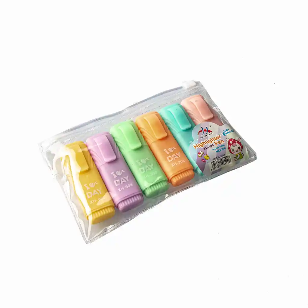 Set de destacadores de colores diseño i love day de 6 unidades! Este set de destacadores serán perfectas para llevarlas con su estuche y usarlos en donde sea! Medidas de cada lápiz: Alto: 6.4cm Profundidad: 1.3cm Largo: 2.3cm