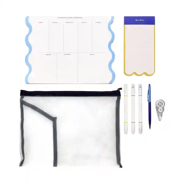Set Contiene 8 Unidades. Estuche de Malla 1 Und + Block Planificador 1 Und + Boligrafos 2 Und + Destacadores 4 Und. Estuche Planificador y Accesorios. Ideal Para Llevar Todo lo Que Necesitas Para Tomar Notas.