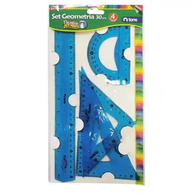 Set de Geometría flexible 30 cms Torres, 4 piezas (vienen en varios colores se envian al azar de acuerdo al stock de la tienda)