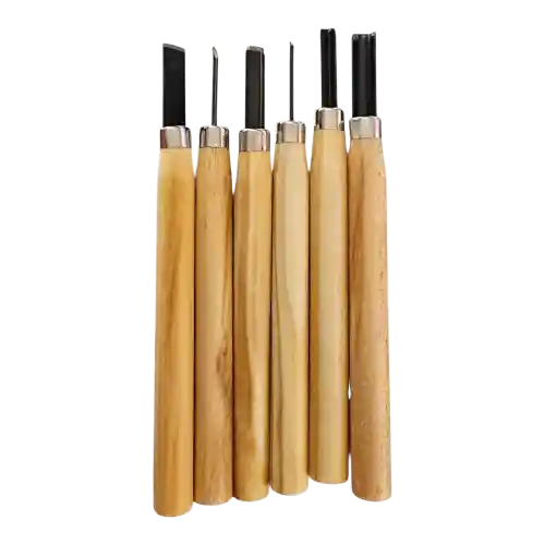 Set de gubias. Contiene 6 unidades Bordes afilados para cortar y tallar Mango de madera