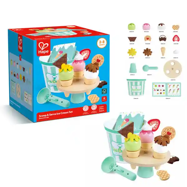 Con 3 bolas de helado de colores, 3 tipos de mermelada y 5 ingredientes de postre diferentes, los niños pueden experimentar con combinaciones deliciosas ilimitadas. helado incluye un balde de helado realista y una cuchara de helado funcional, lo que permite a los niños imitar fácilmente el proceso de elaboración del helado.