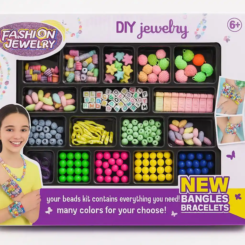 Despierta la creatividad de los más pequeños con este increíble kit de pulseras y collares . Ideal para niñas desde los 6 años, este set incluye una gran variedad de cuentas coloridas, abalorios con letras, figuras divertidas y accesorios para que puedan diseñar sus propias joyas. Perfecto para desarrollar habilidades motoras, estimular la imaginación y pasar horas de diversión creando brazaletes, collares y más, compartimentos con distintos tipos de cuentas Colores vibrantes y diseños únicos Recomendado para mayores de 6 años ¡Regalo ideal para cumpleaños, vacaciones o días creativos en casa! Incluye: Cuentas de letras, abalorios con formas, perlas de colores, cordones y más.