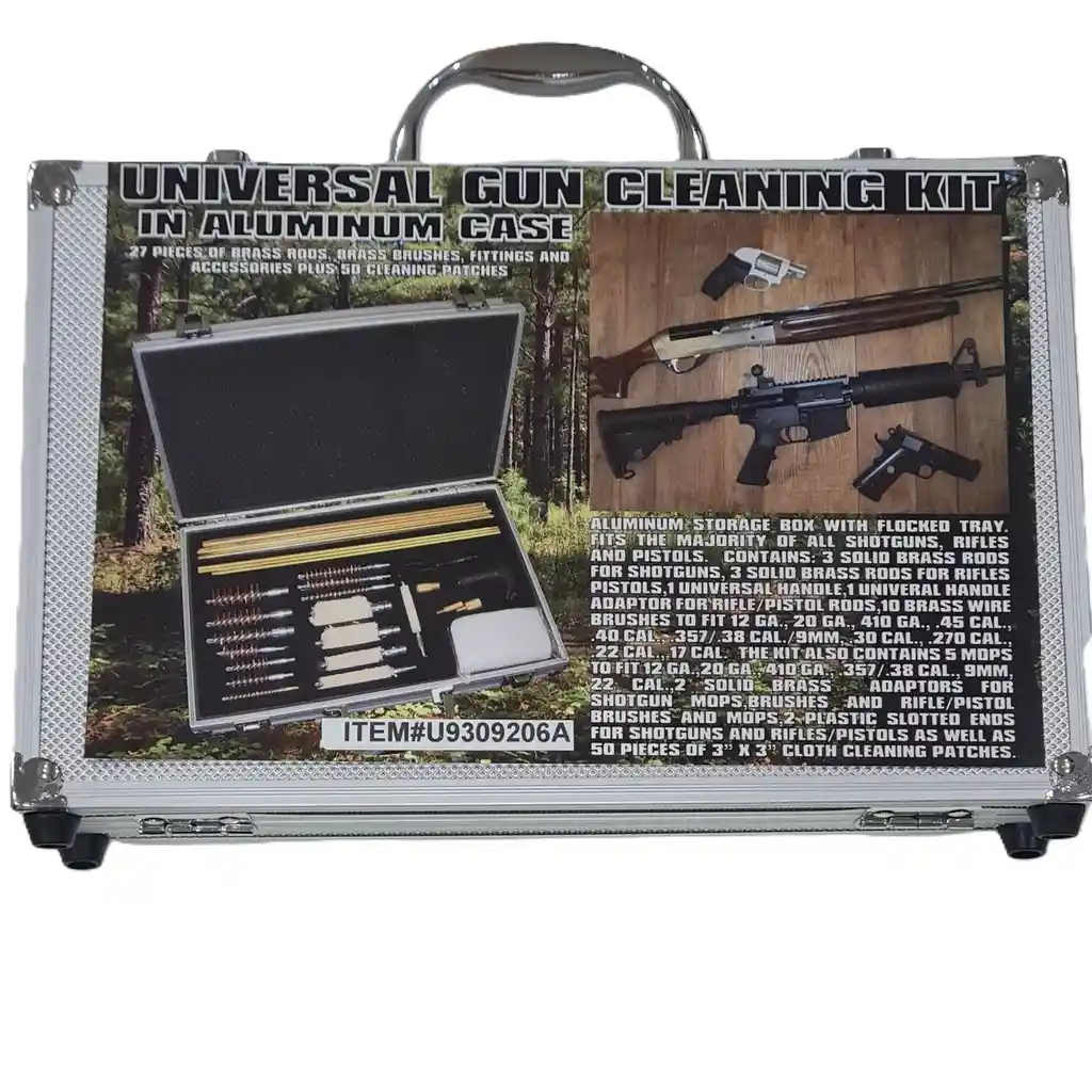 SET LIMPIEZA CAJA ALUM 27pcs Kit universal de limpieza da armas MARCA: JACK PIKE MODELO: Universal Gun Set U9309207 Para todos los calibres de armas cortas y largas Contenido 27 piezas Incluye varios tramos de baquetas de bronce Gratas de Cerde, Metal y Algodón Varios adaptadores y mango de baqueta Parches de limpieza3x3 aprox. 50 unidades En fina caja de aluminio Medida caja 30x19x5 cms. Peso 947 grs Caja aluminio con manilla y clip doble cierre