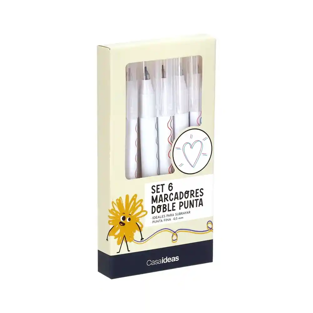 Set Contiene 6 Unidades. Doble Línea Con Diferentes Colores. Ideales Para Subrayar Producto Con Punta Fina 0.3 mm.