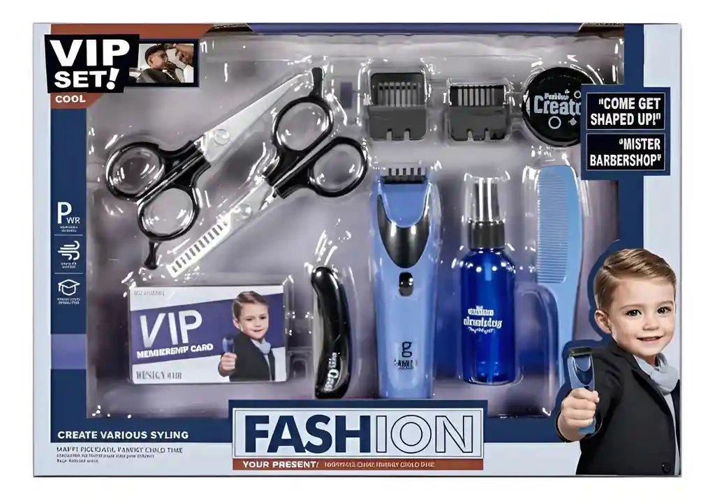¡Deja que los pequeños se diviertan jugando a ser verdaderos barberos! Este set de peluquería infantil incluye todo lo necesario para que los niños imiten cortes, peinados y estilos con total seguridad. Ideal para juegos de rol, estimular la creatividad y compartir momentos en familia. Características del Producto • Incluye accesorios completos: • Tijeras de juguete • Peine • barber maquina de juguete • Spray simulador • Peine pequeño • Dos peinetas/guides • Cera o pomada de juego • Diseño Realista: Sus piezas imitan herramientas reales, permitiendo una experiencia divertida y educativa. • Juego Seguro: Accesorios sin filo, aptos para niños. • Inspirado en Barber Shop: Con frases y estilo profesional que hace el juego más entretenido. • Estimula la creatividad: Ideal para juegos de rol, coordinación y habilidades sociales.