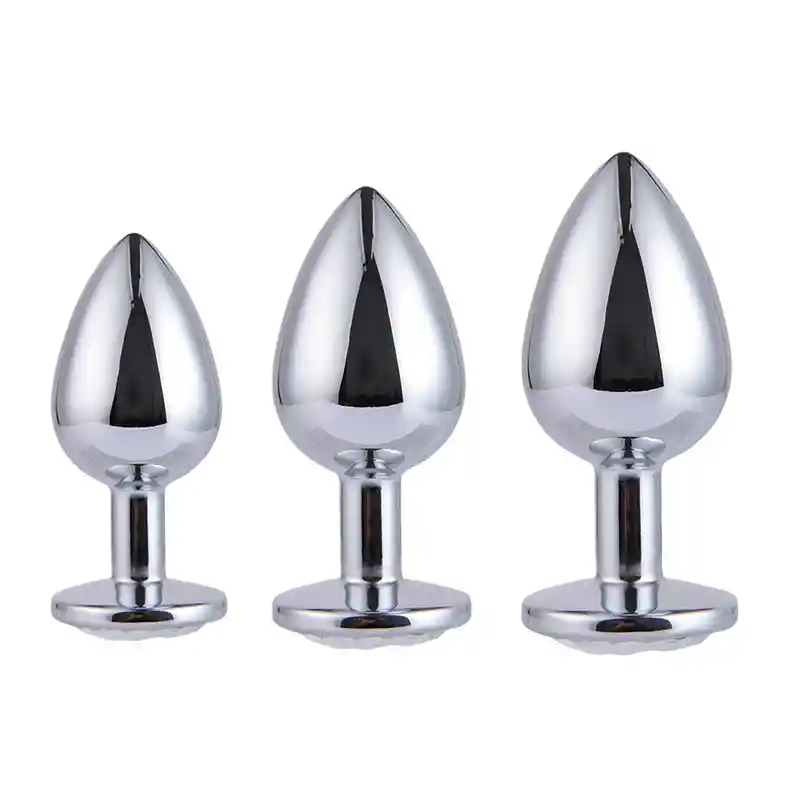 Trio de Plug anales en tamaños S, M Y L. Suavidad, brillo y placer en un solo juguete, Plug anal metálico con joya.