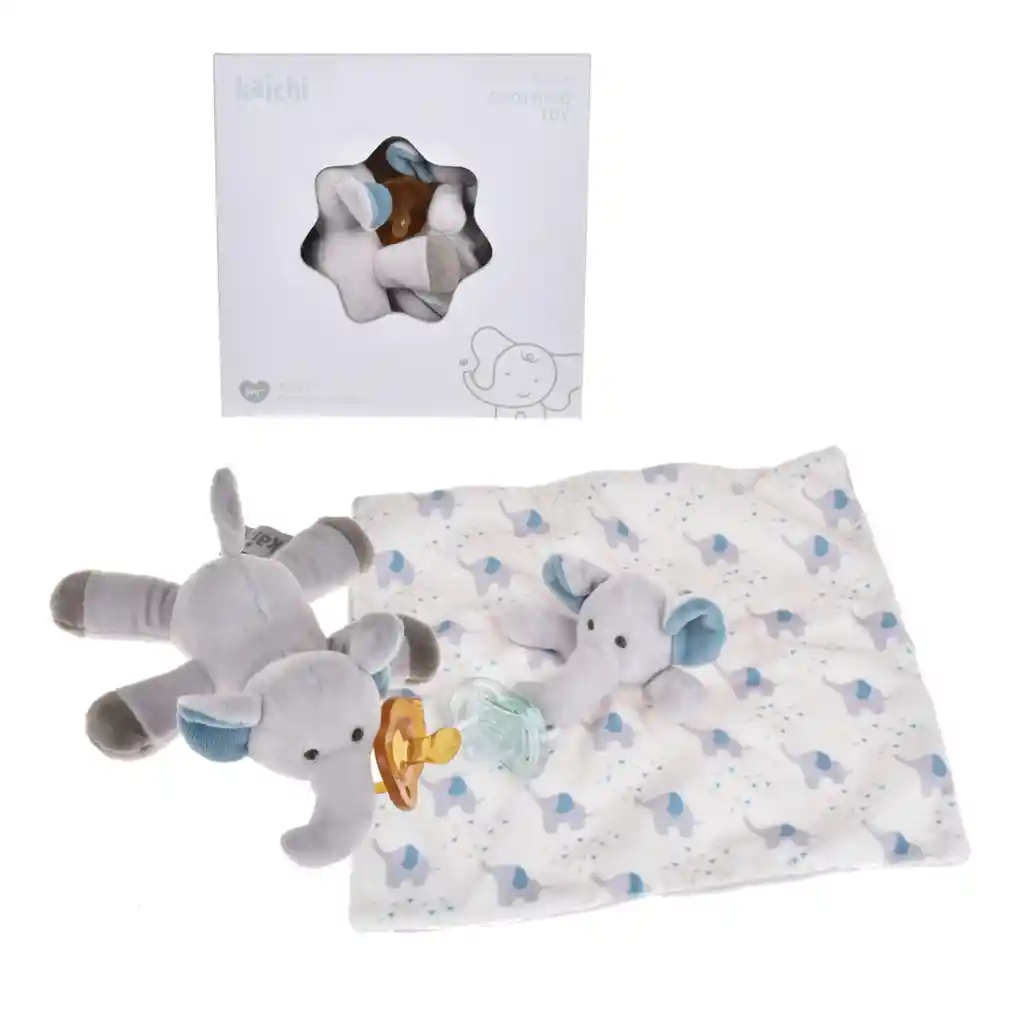 El Set de Regalo Para Recién Nacido Tuto Elefante Plush con Chupete y Peluche Elefante, es una pequeña maravilla y un precioso regalo de bienvenida. Es suave, tierno, cómodo, adorable y muchas cosas más, tu pequeño se sentirá completamente reconfortado a su lado y no querrá separarse nunca de él. Es práctico y fácil de guardar, ideal para que puedas transportarlo a donde quieras. Su textura es suave y sedoso, transmitiendo paz y tranquilidad al bebé, ayudándole a la hora de conciliar el sueño. Además, cada peluche incluye un chupete diseñado para no generar gases en los bebés. No se recomienda el uso de la lavadora.