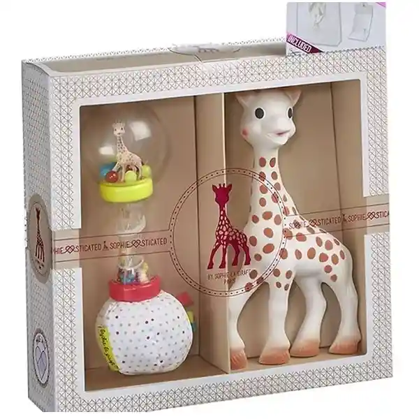 Celebra la primera Navidad del bebé con un set lleno de ternura y tradición. Este hermoso conjunto incluye el clásico mordedor Sophie La Girafe®, elaborado en caucho 100% natural, acompañado de un suave peluche y una media navideña para guardar recuerdos especiales. El sonajero del set de regalo Sophie La Girafe mantendrá a tu bebé ocupado mientras desarrolla sus habilidades. Tus pequeños quedarán cautivados por su material, colores y sonidos interesantes, mientras que los padres apreciarán el diseño seguro. Sophie la Girafe – Set de Regalo 4: El Regalo Ideal para los Primeros Días del Bebé Celebra los primeros días del bebé con el Set de Regalo Sophie la Girafe, un detalle perfecto para baby showers y bienvenidas. Este conjunto combina calidad y funcionalidad para brindar alivio y estimulación en las primeras etapas del bebé. Incluye: Sophie la girafe: El icónico mordedor de caucho 100% natural, ideal para calmar las molestias de la dentición y estimular los cinco sentidos del bebé. Sonajero Bolsa de regalo y tarjeta: Una presentación elegante, lista para regalar en momentos especiales. Este set de regalo Sophie la Girafe es una elección de calidad para acompañar al bebé en sus primeras experiencias, cuidando cada detalle con un toque de tradición. ¡Un regalo único para un comienzo especial!