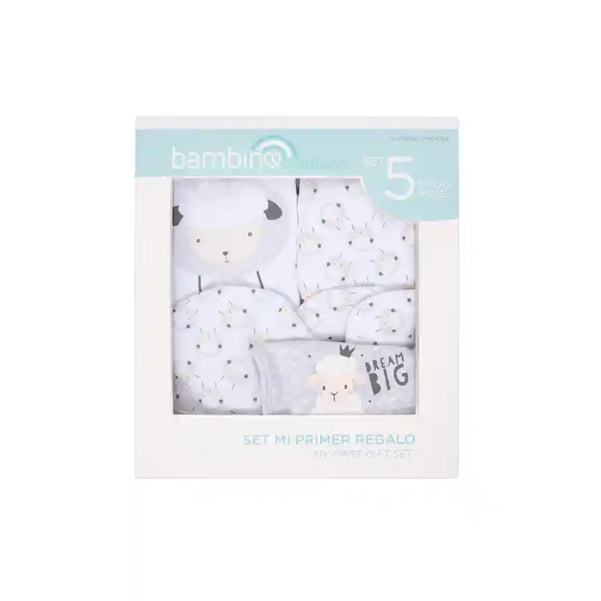 Set De Ropa 5 Pcs Bambino Unisex Oveja, ideal para niñas y niños de 0 a 3 Meses. Características: Lindo y prácticosset de ropa de 5 piezas. Diseñado en Chile Y E.E.U.U. Tela 100% algodón Interlock, tejido con una estructura de construcción más firme y evita que se deforme. Tela suave, lavable, respirable, absorbente y con lúdicos diseños. El set 5 piezas incluye: body, panty, gorro, babero y un par de mitones. Ideal para niñas y niños de 0 a 3 Meses.