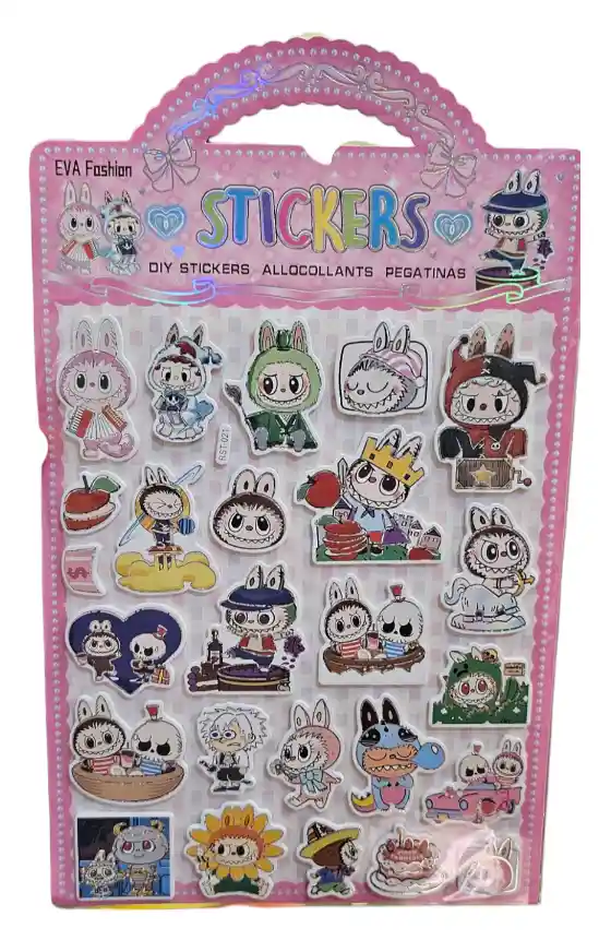 26 hermosos sticker en relieve puff de goma eva y tonos holograficos del hermoso personaje LABUBU