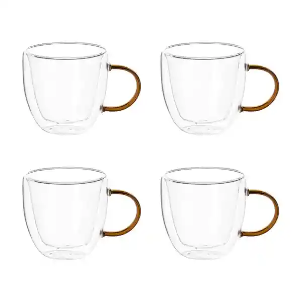 Set Contiene 4 Unidades. De Café de Vidrio Borosilicato Doble Muro Cada Taza Tiene Una Capacidad de 90 mL.