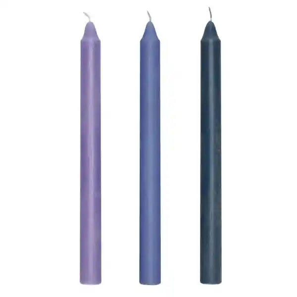 Set Contiene 3 Unidades. Velas Dinner de Colores Para Ocupar Con Tus Portavelas. Tienen un Tamaño de 22 x 25 cm y un Aroma de Jazmín.