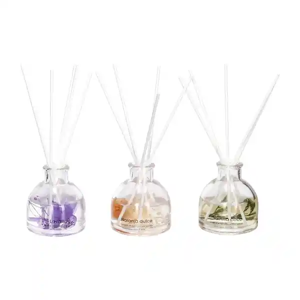 Set Contiene 3 Unidades. Set de 3 Difusores Aromáticos Con Varitas y Flores Decorativas Incluye Aromas De: Lavanda Rosas y Vainilla Mango.