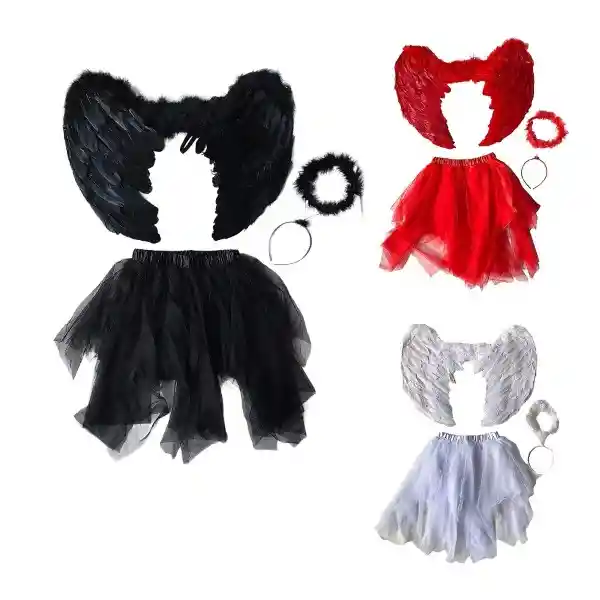 Set Disfraz Falda Aureola Alas Adulto Surtidos