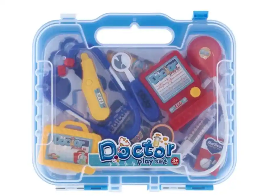 Set de doctor para niñas y niños maleta portátil Este hermoso set es el mejor juego para que tu hijo sea el mejor doctor de todos . Desarrolla habilidades en la enseñanza de roles Contiene 19 piezas y una maletica para guardar o llevar a donde quiera. El material de las piezas son plásticas, durables, fácil de limpiar . Segura para niños Recomendado para niños a partir de los 3 años.