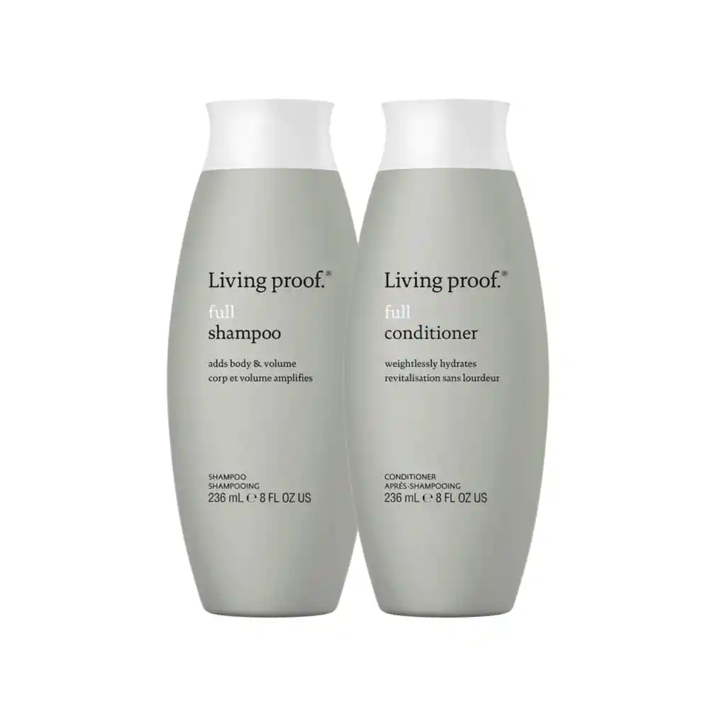 El Set Full de Living Proof fue diseñado para dar volumen y cuerpo real al cabello fino o con poca densidad. Esta rutina de shampoo y acondicionador limpia en profundidad, suaviza y aporta textura ligera, sin apelmazar ni dejar residuos. Gracias a la tecnología patentada ETAS (Expandable Textured Aero-Spheres), crea separación natural entre las fibras capilares para maximizar el volumen desde la raíz. El resultado es un cabello más abundante, con movimiento y apariencia más densa desde el primer uso. Fórmulas veganas, sin sulfatos, parabenos ni siliconas. Ideal para uso frecuente. Cantidad: 236 ml c/u.