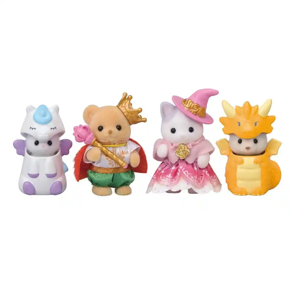 Juguete niño. ¡Vive cuentos de ensueño con el SET HADAS AMIGAS FANTÁSTICAS – SYLVANIAN FAMILIES! Sumérgete en un mundo mágico junto a estas adorables figuras disfrazadas de hada, princesa, caballero y dragón. Este set incluye cuatro personajes bebé de Sylvanian Families con disfraces detallados y accesorios encantados como corona, varita, sombrero de mago y más, listos para protagonizar las aventuras más dulces del reino de la fantasía. Este set impulsa la creatividad y el juego simbólico, invitando a imaginar historias llenas de valentía, amistad y magia. ¡Haz que cada día sea un cuento inolvidable en el mundo Sylvanian!