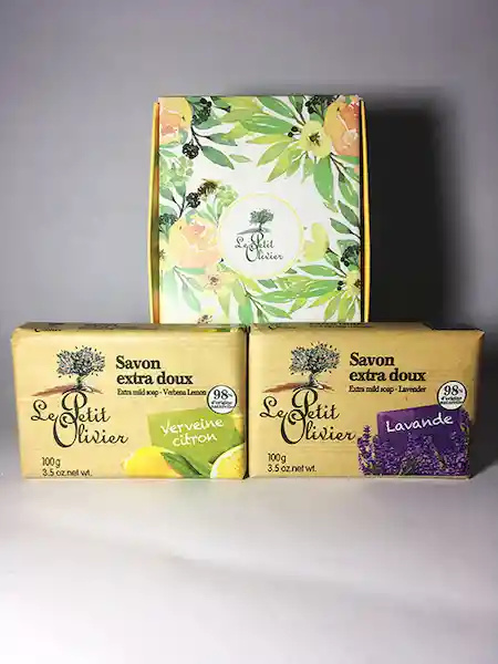 Cajita Con 2 Suaves y Cremosos Jabones de Lavanda y de Verbena. Aptos Para Todo Tipo de Piel. Sin Parabenos Ni Fenoxietanol. Con Aceites 100% Vegetales. Sin Materia Prima de Origen Animal. No Testeado en Animales. Envase No Contaminante y Reciclable.