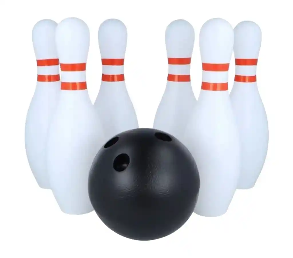 Set juego de bowling Todas las piezas son plásticas Incluye: - 6 pinos: 22cm de alto - 1 pelotas: 10cm de diámetro