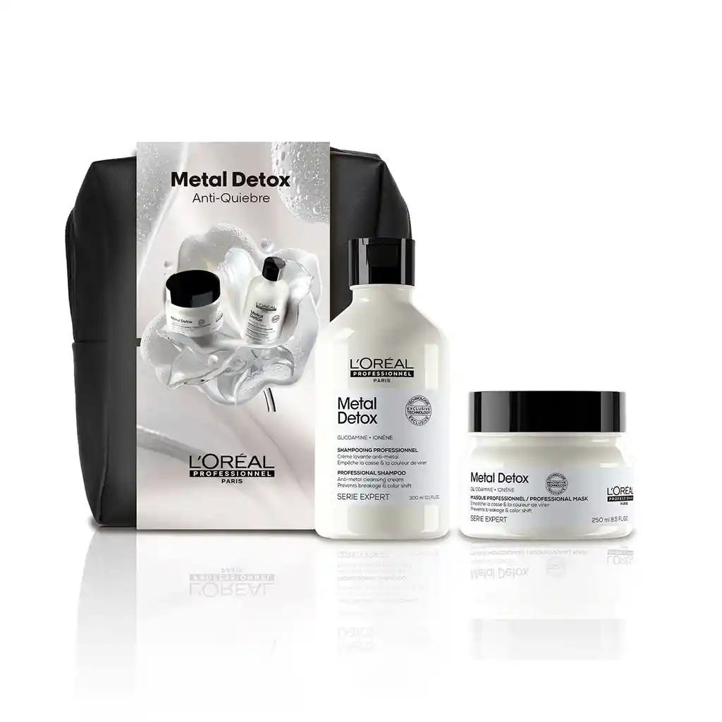 Set L'oréal Professionnel Metal Detox Antiquiebre Para Cabello Dañado Y Con Color Shampoo 300 Ml + Máscara 250 Ml + Cosmetiquero