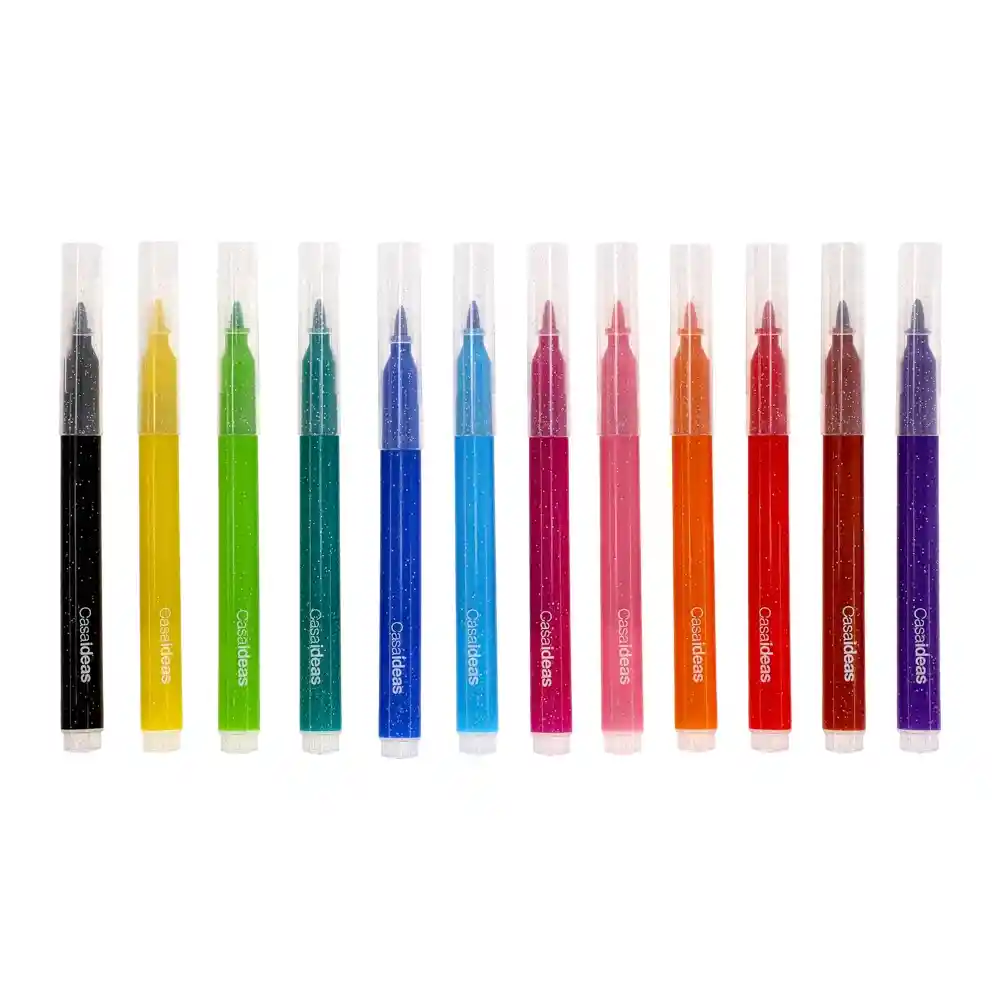 Set Contiene 12 Unidades. Tipo Marcador Con Terminación en Brillos Glitter Incluye 12 Lápices de Distintos Colores.