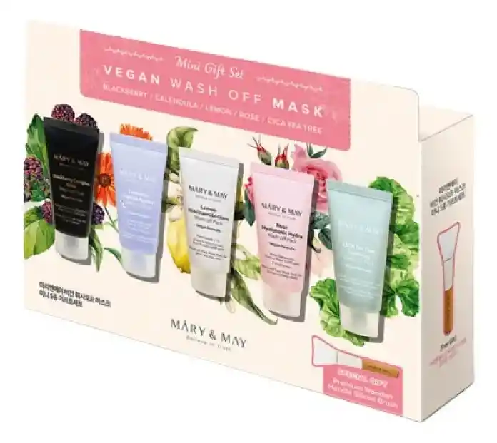 Set Mary & May Vegan Wash Off Mask Mini Set con 5 mascarillas faciales veganas diseñadas para tratar diferentes necesidades de la piel como hidratación, calma, luminosidad y control de impurezas. Incluye fórmulas con ingredientes naturales como caléndula, limón, rosa, árbol de té y blackberry que ayudan a purificar, suavizar y revitalizar el rostro. Ideal para probar la línea completa, complementar tu rutina coreana y mantener la piel equilibrada, fresca y saludable. Producto original Mary & May. Uso externo.