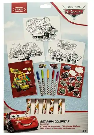 ¡A toda velocidad con el "Set para colorear Cars"! Prepara tus motores para una explosión de color con Rayo McQueen y sus amigos. Este kit de arte de Cars incluye 9 láminas para colorear llenas de acción, 1 lámina de stickers para personalizar, 1 Cuadernillo de Croquis y 5 marcadores de colores. Ideal para desarrollar la creatividad, la coordinación mano-ojo y el amor por los coches en los pequeños. ¡La diversión nunca se detiene!