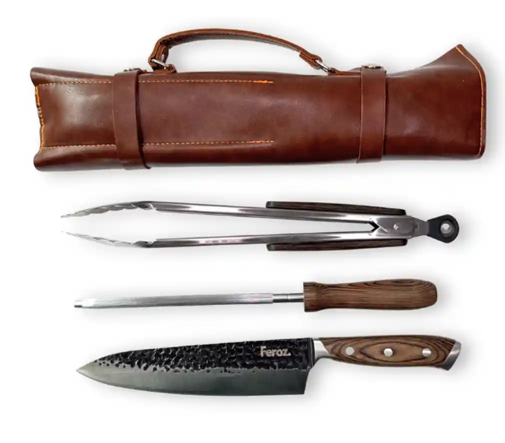 Lleva tu pasión por la parrilla al siguiente nivel con el Set Parrillero Feroz, un trío indispensable de herramientas diseñado para quienes disfrutan el ritual del fuego con estilo, precisión y calidad. Este set reúne lo esencial para cualquier parrillero exigente: cuchillo, tenaza y chaira, todo presentado en un elegante porta cuchillos de cuero. 🔥 ¿Qué incluye? Cuchillo parrillero afilado: Precisión y corte firme para cualquier tipo de carne. Tenaza robusta: Ideal para maniobrar cortes con seguridad y control. Chaira afiladora: Mantén siempre el filo perfecto, sin perder ritmo frente al fuego. Porta cuchillos de cuero PU: Elegante, práctico y resistente. Lleva tus herramientas con orgullo y orden. 🥩 Perfecto para: Asados familiares o con amigos Parrillas al aire libre o en quincho Regalo para fanáticos del buen asado Con el Set Parrillero Feroz, cada asado se transforma en una experiencia con carácter. Diseño, funcionalidad y ese toque salvaje que todo buen parrillero necesita.