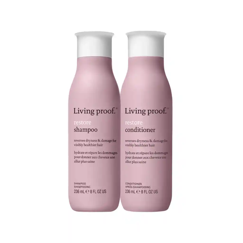 El Set Restore de Living Proof fue desarrollado para transformar cabellos secos, dañados o debilitados. Esta rutina de shampoo y acondicionador ayuda a revertir los signos visibles del daño, mejorar la resistencia de la fibra capilar y restaurar el brillo y la suavidad natural del cabello. Ambos productos contienen la tecnología patentada Healthy Hair Molecule (OFPMA), que forma una barrera protectora contra el daño futuro, mientras repara desde el interior. Limpian suavemente, acondicionan profundamente y dejan el cabello más fuerte, flexible y visiblemente más sano. Fórmulas veganas, sin sulfatos, siliconas ni parabenos. Apto para uso frecuente. Cantidad: 236 ml c/u.