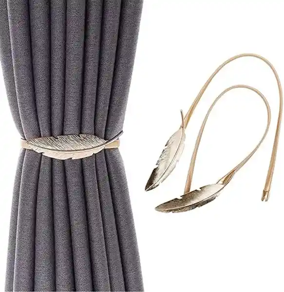 Set Sujeta Cortinas Con Diseño Pluma Dorada