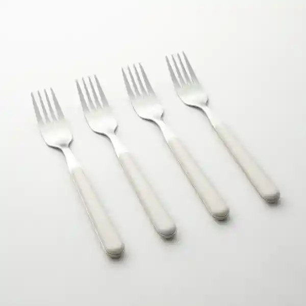 Set Contiene 4 Unidades. Tenedores de Torta de Acero Inoxidable Con Base Abs de Color Blanco Hueso.