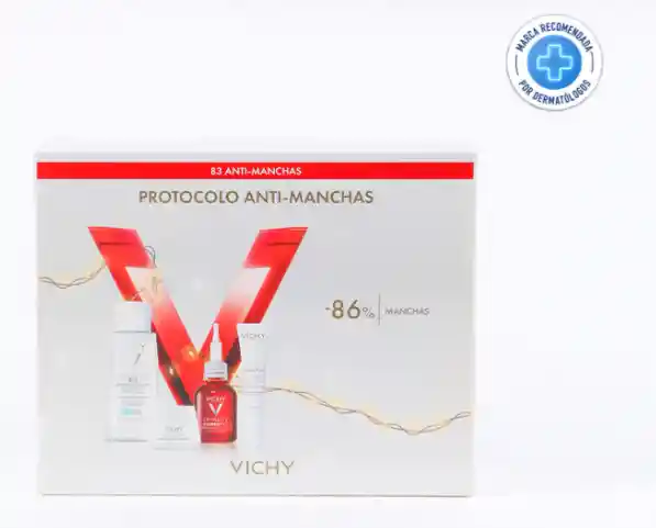 Set Vichy B3 Sérum Anti-Manchas es una rutina cosmética enfocada en mejorar la apariencia de manchas y en unificar el tono del rostro. Incluye el sérum con B3 (niacinamida) y productos complementarios para potenciar la luminosidad e hidratación diaria. ■ Beneficios y características Ayuda a disminuir visiblemente la apariencia de manchas oscuras. Contribuye a un tono más uniforme y luminoso. Hidratación y confort para uso diario. Rutina completa: limpieza/hidratación + sérum B3 para potenciar resultados. Texturas ligeras y de rápida absorción, aptas para todo tipo de piel. ■ Ingredientes principales Niacinamida (Vitamina B3): apoya la reducción de la hiperpigmentación y refuerza la barrera cutánea. Complejo de ácidos exfoliantes suaves (AHA/PHA, según set): favorecen la renovación superficial para una piel más lisa y luminosa. Agua Volcánica Mineralizante de Vichy: rica en minerales que ayudan a fortalecer la barrera cutánea. Glicerina y emolientes: contribuyen a mantener la hidratación. ■ Modo de uso Aplicar el Sérum B3 sobre piel limpia, en rostro y cuello, mañana y noche. Continuar con la crema hidratante incluida en el set. Por la mañana finalizar con protector solar de amplio espectro FPS 30 o superior. Si el set incluye productos exfoliantes, usarlos en la noche y ajustar frecuencia según tolerancia. ■ Advertencias y uso responsable Uso externo. Evitar contacto con ojos y mucosas. En caso de irritación, suspender su uso. No aplicar sobre piel lesionada o recién depilada. Realizar prueba de parche en piel sensible. La fotoprotección diaria es esencial en rutinas antimanchas. Conservar en lugar fresco y seco, fuera del alcance de los niños. ■ ¿Para quién es? Personas con manchas por sol o tono disparejo que buscan uniformidad y luminosidad. Apto para la mayoría de los tipos de piel; ajustar la frecuencia del exfoliante en piel sensible.