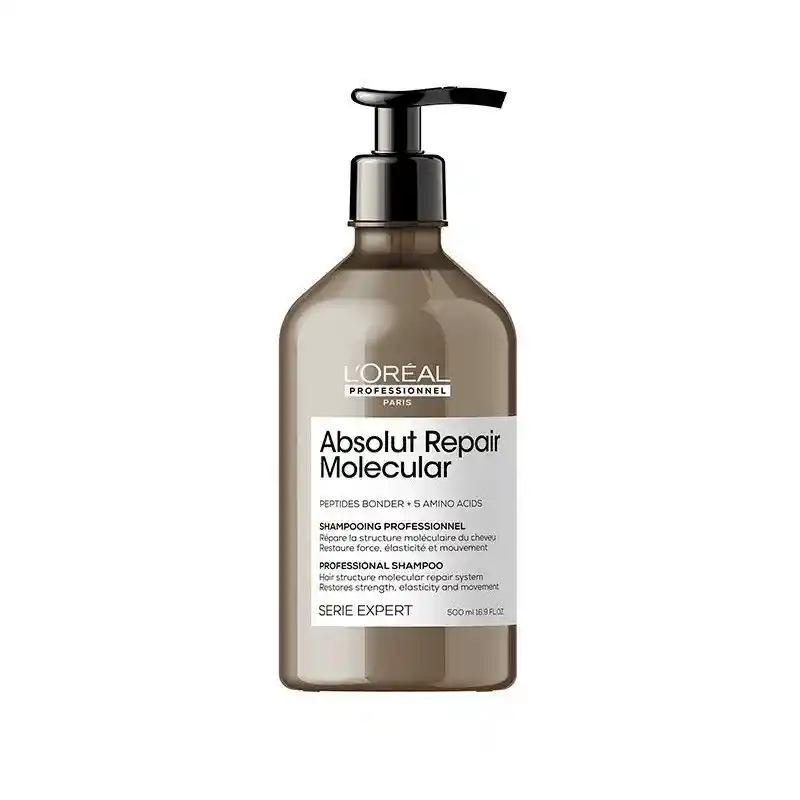 ¡Shampoo Profesional que repara la estructura molecular de tu cabello, hasta tu proxima visita al salón! Absolut Repair Molecular de LOreal Professionnel, repara hasta dos años de daño en un solo uso* Cuando el cabello esta dañado, su estructura molecular compuesta por péptidos está comprometida. La mayoría de los péptidos son muy grandes para ser reinsertados en la fibra, haciendo el daño casi irreversible. Descubrimiento científico, Absolut Repair Molecular. Repara dos años de daños en un solo uso.* Por primera vez, la Investigación Avanzada de LOreal ha conseguido descomponer los péptidos, para inyectar sus componentes por separado en la fibra**. Una vez dentro, reforman y reconstruyen la estructura molecular del cabello** Beneficios: - Rellena la estructura molecular del cabello con una eficacia duradera**. - Más que reparación superficial, reparación molecular interna. - Penetración profunda***. - Transformación instantánea. - Restaura la fuerza original.**** Shampoo Sin Sulfatos Absolut Repair Molecular,formulado con Enlaces de Péptidos + 5 Aminoácidos para reparar la estructura molecular del cabello. La lujosa textura de su fórmula limpia, desenreda el cabello y proporciona un alto nivel de cuidado. El cabello queda más fuerte y nutrido, con mayor elasticidad y movimiento**. MODO DE USO: Aplicar sobre el cabello mojado. Emulsionar hasta obtener espuma. Enjuagar. Para resultados óptimos, aplicar Serúm con enjuague Absolut Repair Molecular. Somos la marca profesional pionera en Paris Nosotros re-inventamos la manera de innovar con el poder de la ciencia. Creamos productos con resultados superiores y seguros. Desarrollado por PROs para PROs. *Test instrumental tras 15 aplicaciones de Absolut Repair Molecular champú + sérum con enjuague + mascarilla sin enjuague. **Prueba de consumidores tras la aplicación de pretratamiento + shampoo + serum con enjuague. *** Prueba analítica tras la aplicación del pretratamiento ****Prueba instrumental tras la aplicación del pretratamiento Ficha del producto: Incluye: Shampoo 500ml Nombre comercial: Shampoo Absolut Repair Molecular 500ML Loreal Professionnel Beneficio del producto: Reparación Condicion del producto: Nuevo Contenido ml: 500 Formato belleza: Individual Genero: Unisex Hecho en: España Pais: Chile Posee sal: No Tipo de cabello: Dañado Tipo tratamientos de cabello: Shampoos ver menos